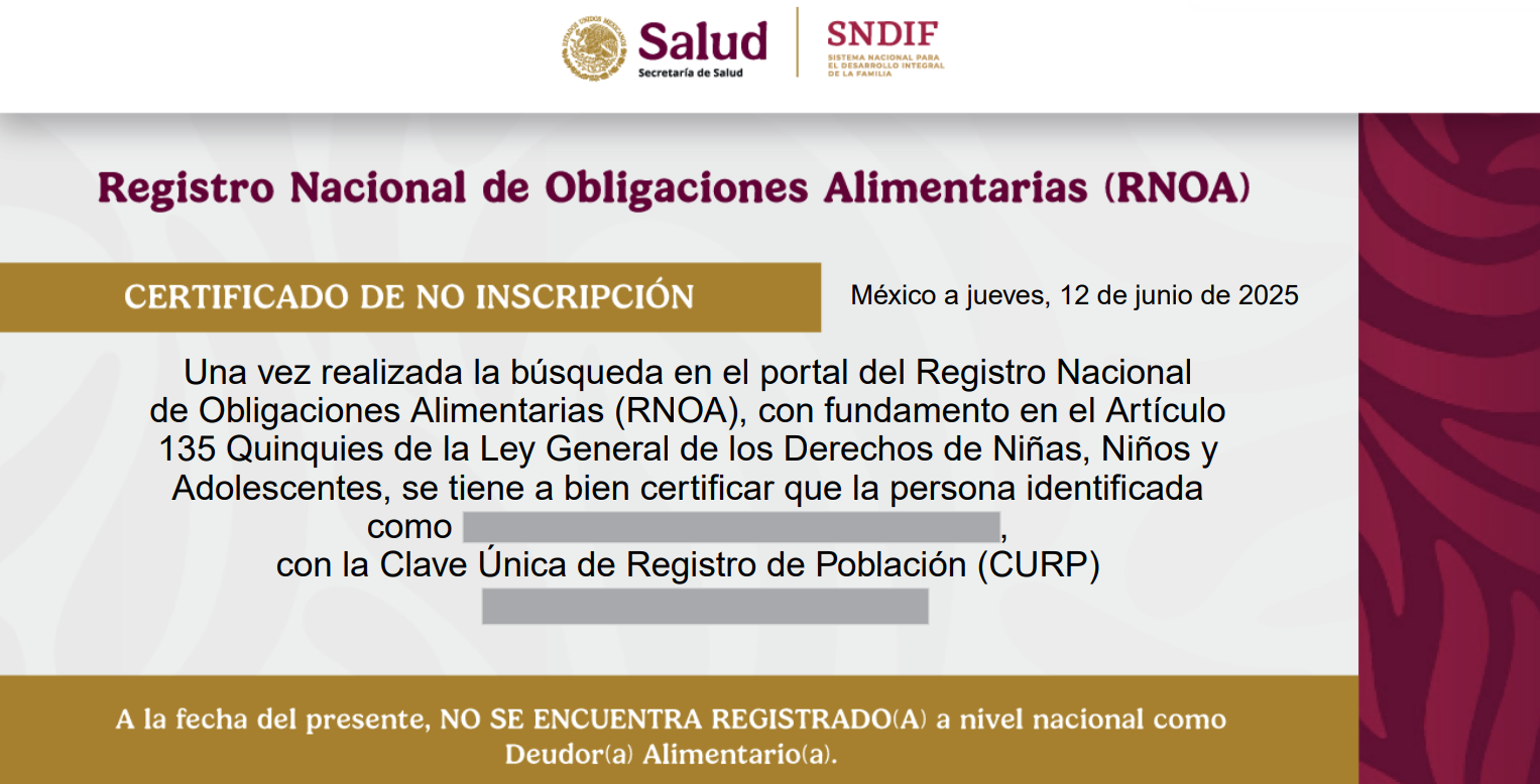 CONSTANCIA NO DEUDOR ALIMENTICIO